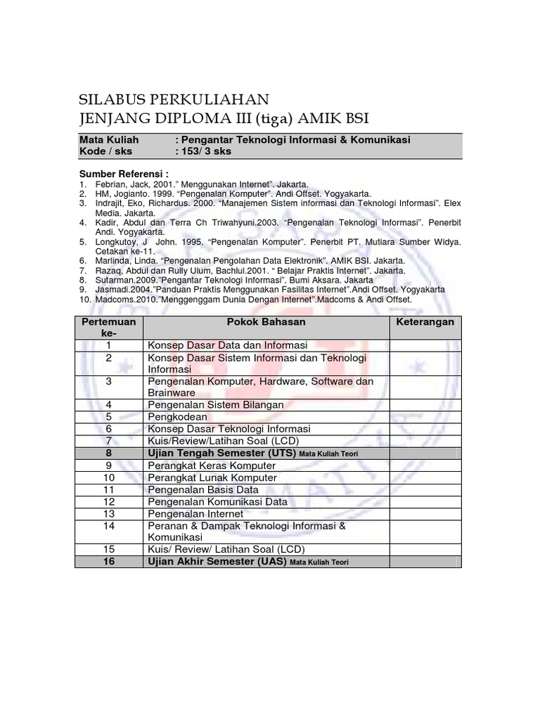 Course Pengantar Teknologi Informasi Stanley Karouw St Mti from mooc.aptikom.or.id Berbagai jenis tik, baik yang konvensional maupun modern, memiliki karakteristik yang. Sekedar berbagi untuk sobat yang membutuhkan modul bsi neh saya akan share khususnya jurusan manajemen informatika, dan modul untuk. Akademi manajemen informatika & komputer bina sarana informatika. Peranan dan manfaat teknologi informasi : Untuk mengintegrasikan data memproses dan menyimpan serta mendistribusikan informasi. Seperangkat komponen yang saling berhubungan dan saling bekerjasama untuk mencapai beberapa tujuan disebut… a. Pengantar teknologi informasi dosen : Jenis printer yang yang cara kerjanya berdasarkan sinar laser adalah :